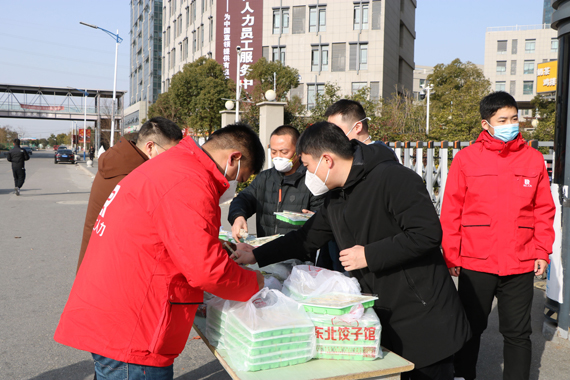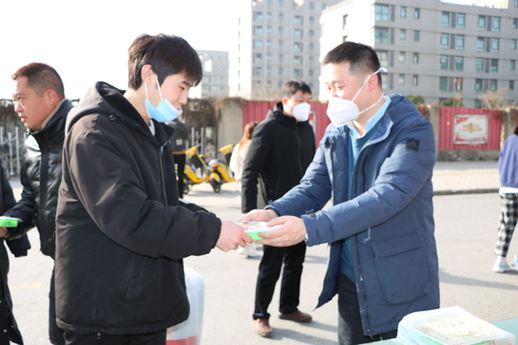 活動(dòng)現(xiàn)場(chǎng),人社局領(lǐng)導(dǎo)與天仁總經(jīng)理為留泰員工送上新春祝福的同時(shí)并為員工們派發(fā)水餃,讓他們充分感受到泰州這座城市的溫暖,并感謝他們?yōu)樘┲萁?jīng)濟(jì)建設(shè)和社會(huì)發(fā)展做出的貢獻(xiàn)。